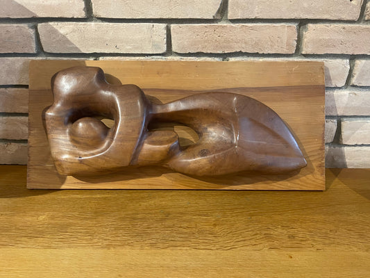 Vintage Mid-Century Carved mahogany Wall relief (Madonna & Child) signed in the wood