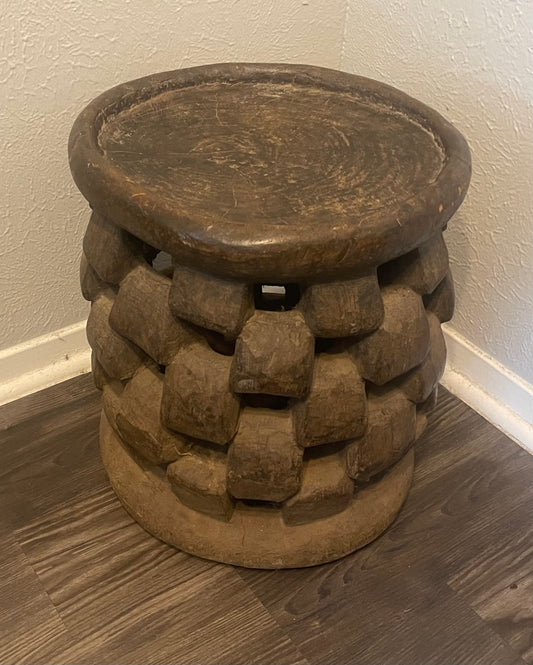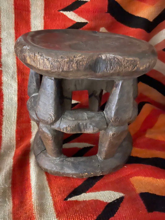 Old Bamileke Wooden Stool, Cameroon, W. Africa with a unique carved Abstract Design