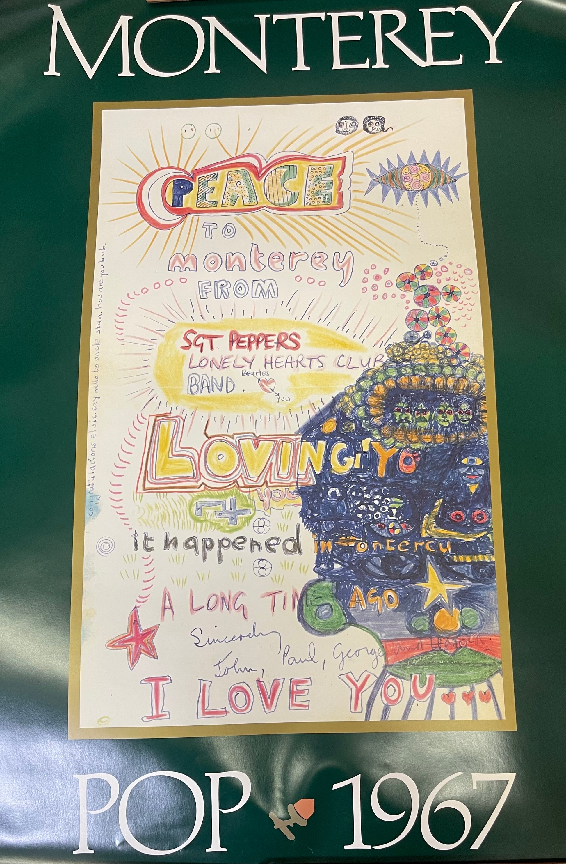 Vintage poster created for the Monterey Pop Festival,1967 signed by all the Beatles